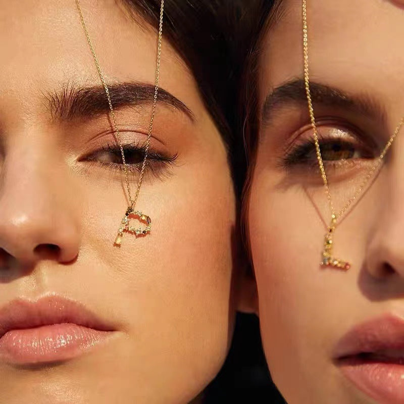 Colored Diamond Letter Necklace