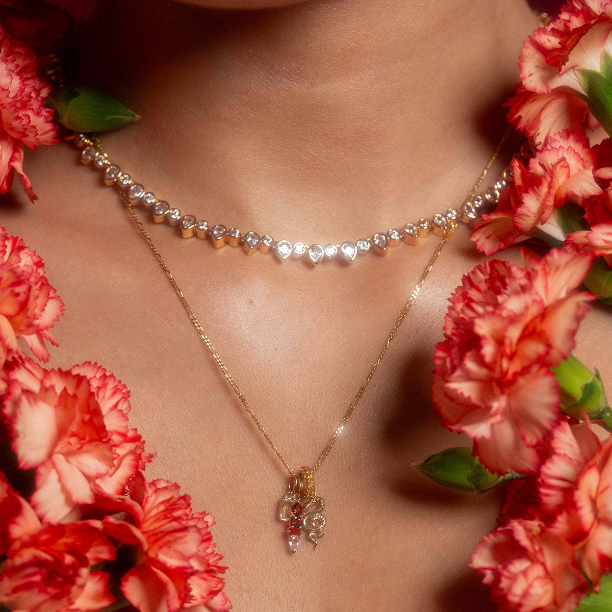 January: Red chalcedony, garnet, white topaz